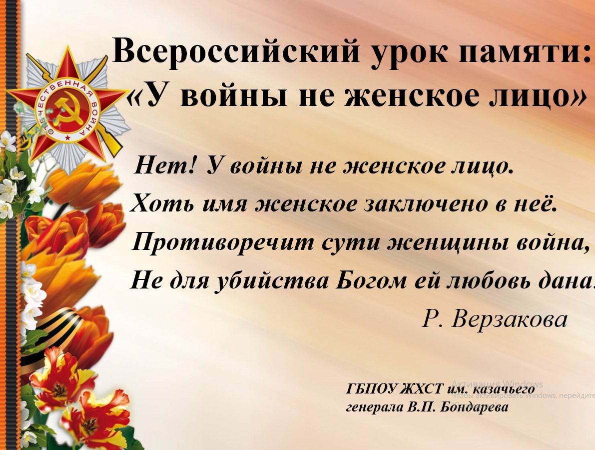 Наталия Васильевна Гончарова wrote a new post, <strong>Урок памяти «У войны не женское лицо»</strong><strong></strong> 2 недели, 5 дней назад