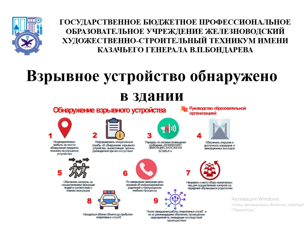 Наталия Васильевна Гончарова wrote a new post, <strong>Инструктаж «Взрывное устройство обнаружено в здании»</strong> 6 дней, 5 часов назад