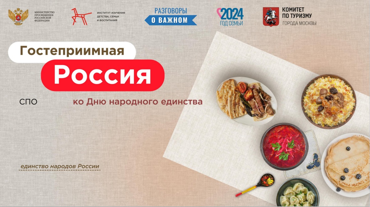 28.10.2024г. прошел классный час в группах КСК-1-24 (38) и Ю-4-21 (11) на тему: «Гостеприимная Россия. Единство народов России.»