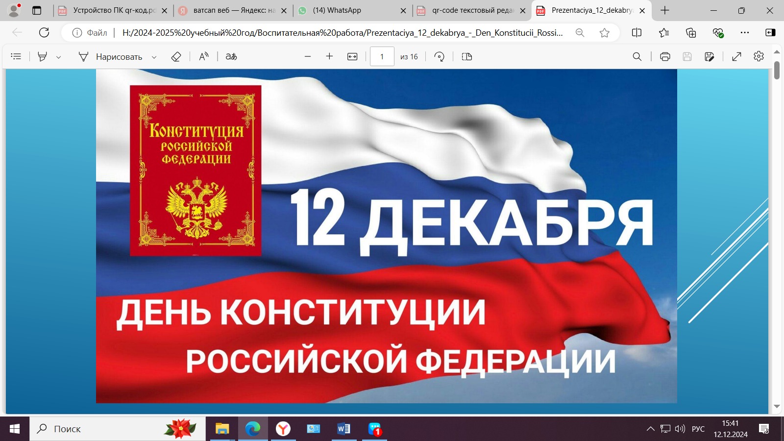В группе КСК-1-24 12 декабря прошел классный час, посвященный Дню Конституции.
