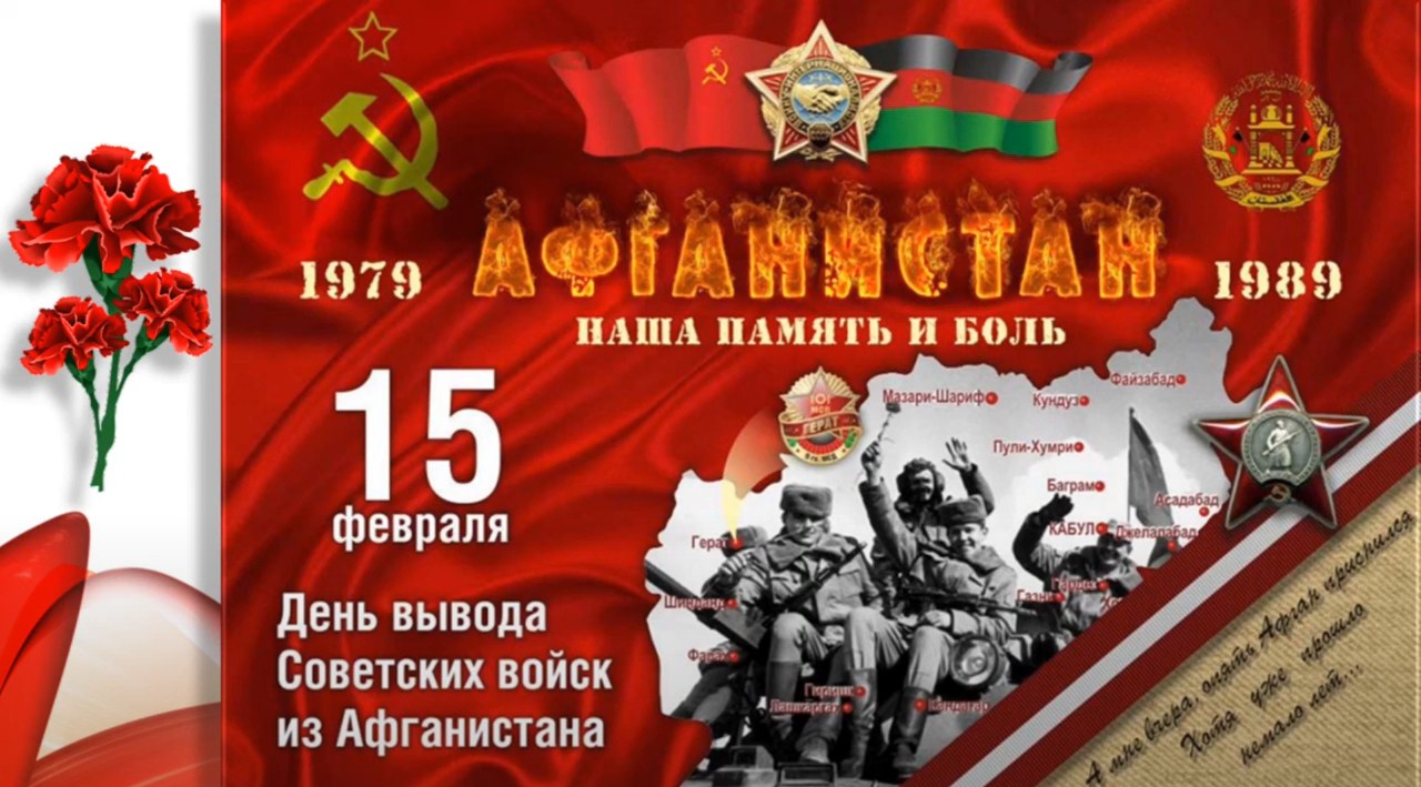 15 февраля 1989 года был завершен вывод советских войск из Афганистана. С тех пор эта дата отмечается, как День памяти воинов — интернационалистов.