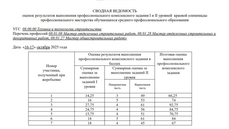 КРАЕВОЙ ЭТАП ОЛИМПИАДЫ ПРОФЕССИОНАЛЬНОГО МАСТЕРСТВА