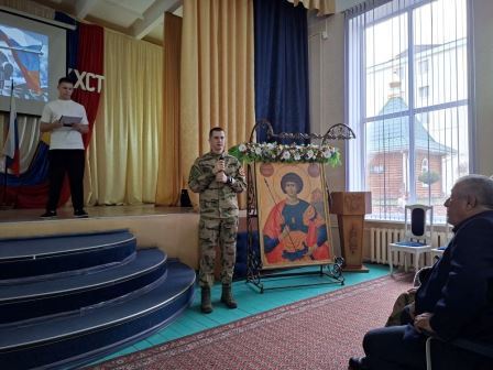 9 декабря в актовом зале техникума прошло торжественное мероприятие посвященное Дню героев Отечества. Гостями этого мероприятия стали: воин интернационалист Кавалер ордена Мужества Иванченко Иван Иванович; сотрудник региональной службы специального назначения Пограничной службы ФСБ России, сотрудник нашего техникума, он принимал участие в спецоперациях в Чечне, в Дагестане, в Крыму Награжден государственными наградами подполковник Абдула Ордашевич Гаджиев; участники СВО, офицеры подразделения специального назначения ордена Жукова «Кавказ», награжденные государственными и ведомственными наградами; настоятель храма Успения богородицы в пос. Иноземцево отец Иоанн; представители одной из религиозных общин города; участник СВО, доброволец, проходил службу в бригаде «Терек».