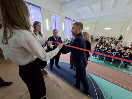 Директор техникума Васин Ю А. и почетные гости совершили церемонию открытия площадки регионального чемпионата «Профессионалы 2026» по компетенции «Художественная роспись по дереву» — разрезав красную ленту.