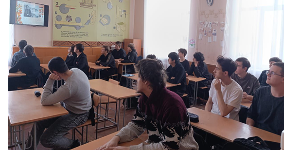 Студентам была показана презентация, которая включала в себя информационно-образовательный блок о роли женщин в ходе боевых действий и работе в тылу в годы Великой Отечественно войны, а также о том каким образом отмечался праздник 8 Марта в 1941-1945 годах.